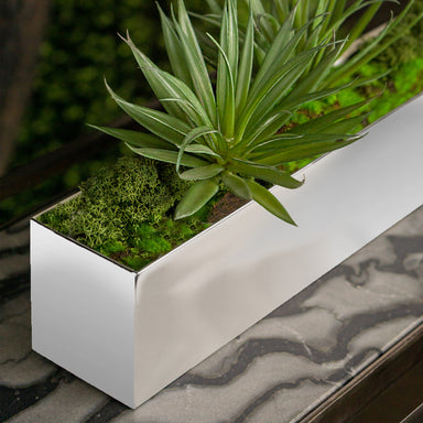 Simple textural table greens in our polished stainless steel linear vase. Indoor only. *Each piece is handcrafted, no two are exactly alike and var...