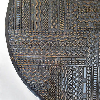 Individual natural stone graphic shapes are inlaid by hand onto a fiberglass form. Color and characteristics vary between each handmade piece. Indo...
