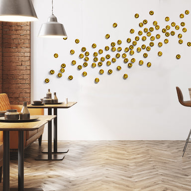 A simple shape that offers so much. A fanning cluster of gold discs create repetition, movement, and wonderful shadow patterns. Combines well with ...