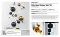 Three sizes of high gloss spheres in different shades of gold offer a bouncy, sleek accent to your vertical surfaces. The color of each piece in the set could vary and all pieces will not match. Alone or in combination with other components, use tons of them! The ten-piece set includes 2 large (3"D), 4 medium (2"D), 4 small (1.5”D). Five colors in the collection.